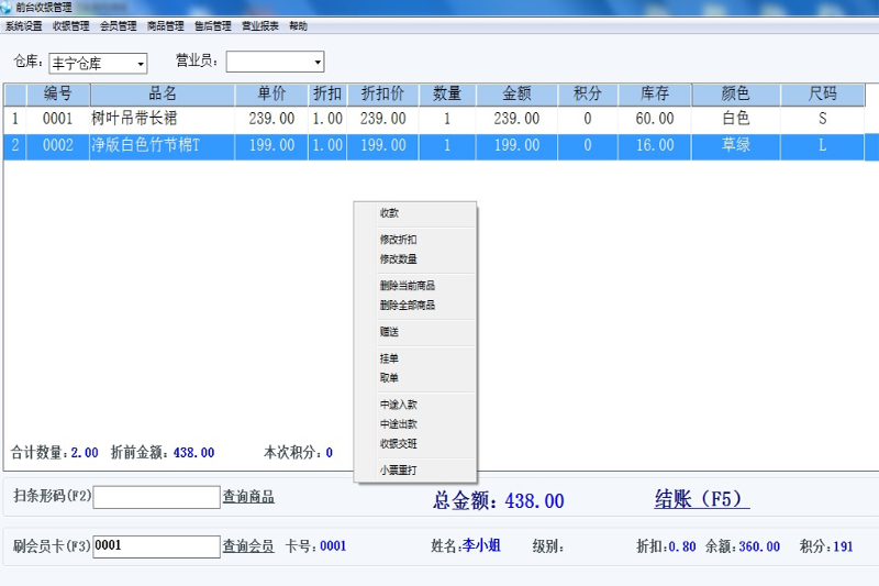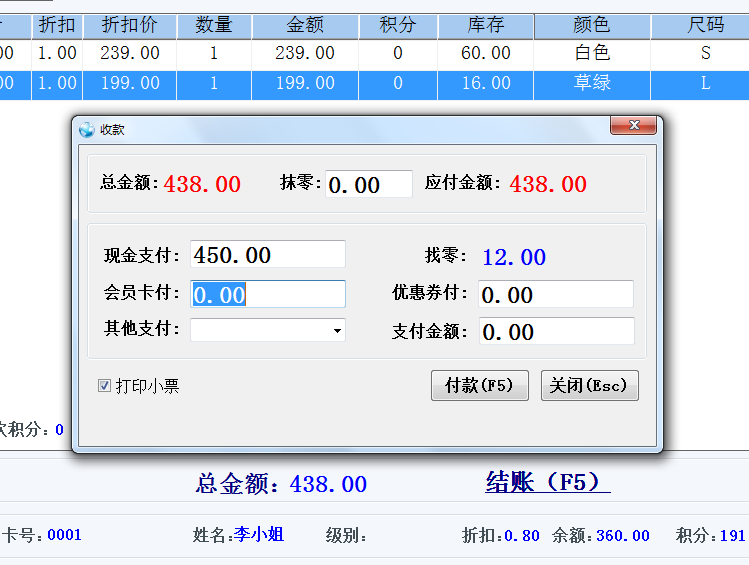 前臺POS收銀界面