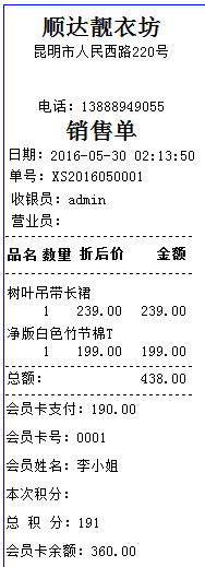 小票打印界面,可以根據客戶的要求設計各式各樣的小票樣式